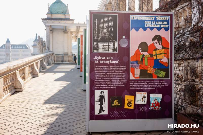 A Magyar Kereskedelmi és Vendéglátóipari Múzeum gyűjteményéből válogatott plakátok, kártyanaptárok, árucédulák, képeslapok és játékok fotóinak segítségével tárul fel a kiállításon, hogyan hirdették a reklámok és a kirakatok a bőséget egy olyan korban, amikor a legtöbben sorban álltak a legkisebb ajándékért is.