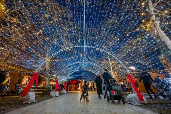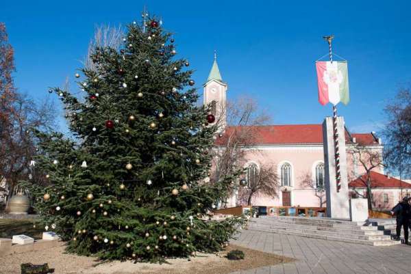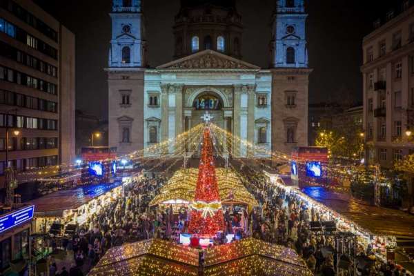 Megnyílt az Advent Bazilika karácsonyi vásár, a Szent István téren áll a karácsonyfa és a betlehem.