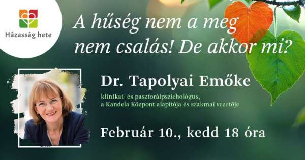 A hűség nem a meg nem csalás! De akkor mi? - Előadó: Dr.Tapolyai Emőke klinikai- és pasztorálpszichológus, a Kandela Központ alapítója és szakmai vezetője
