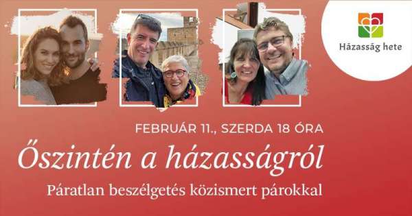 Őszintén a házasságról - Páratlan beszélgetés közismert párokkal - Résztvevők: Hamar Donát szerkesztő, műsorvezető és felesége, Hamar Noémi párkapcsolati coach; Kotschy András gyógyszerkutató és felesége, Kotschyné Bellosevich Anna tanár; Muzslai Gábor pasztorálpszichológus, a 2=1 Házasmisszió elnöke és felesége, Muzslainé Nagy Etelka teológus, házassággondozó. Moderátor: Gécsek-Tóth Enikő, a Kossuth rádió szerkesztő-műsorvezetője.